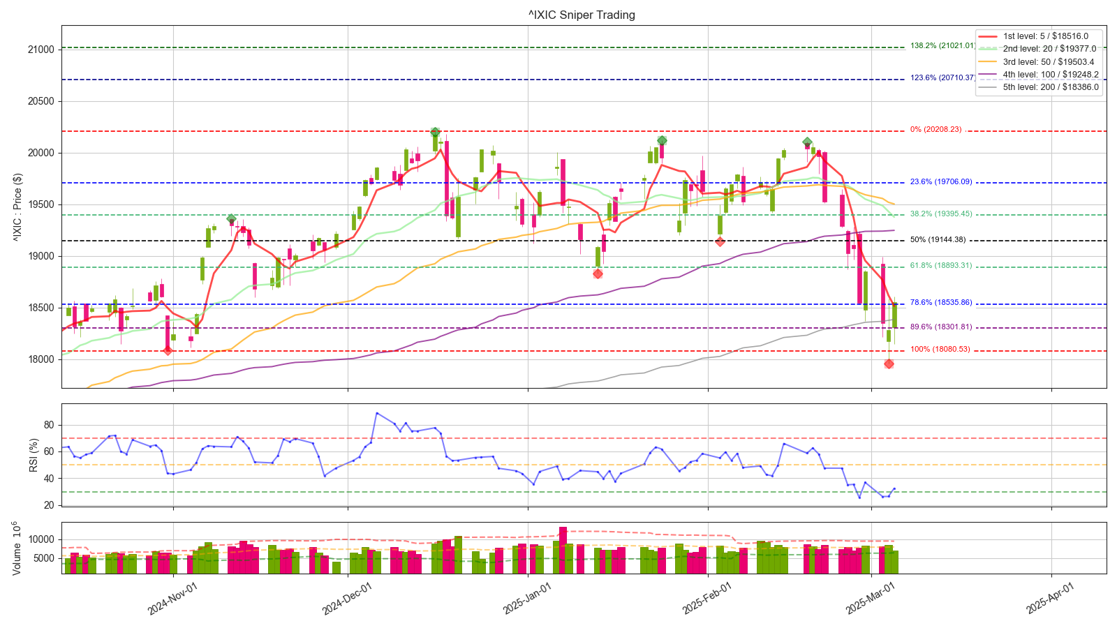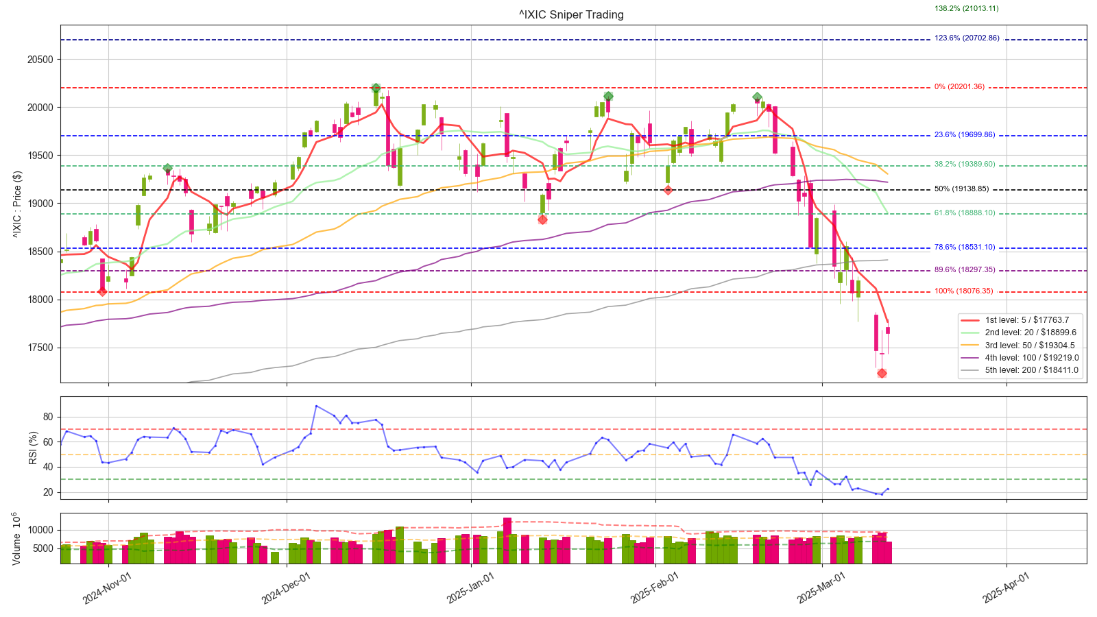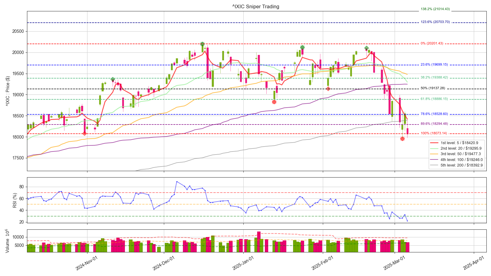 나스닥 원지수 18000 선을 굉장히 중요한 지지대로 보고 있었는데, 이미 돌파 당했습니다. 이제는 18000선과 200일선이 저항으로 작용할 소지가 높아졌는데, 빠르게 돌파해준다면 한번 더 희망회로를 돌려볼 수 있겠습니다.