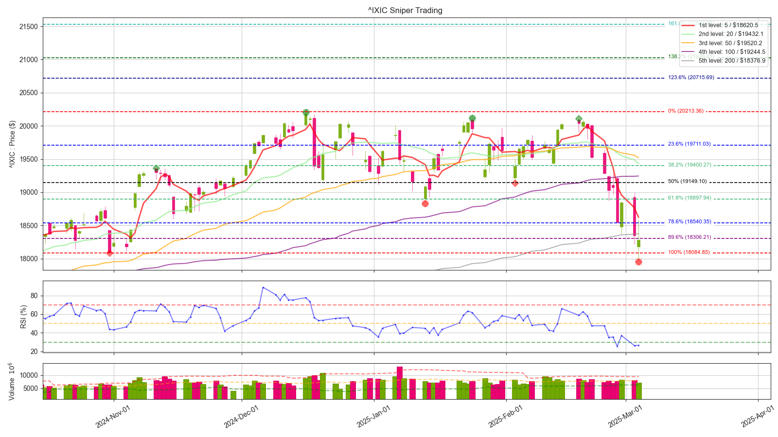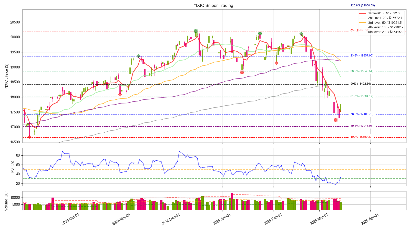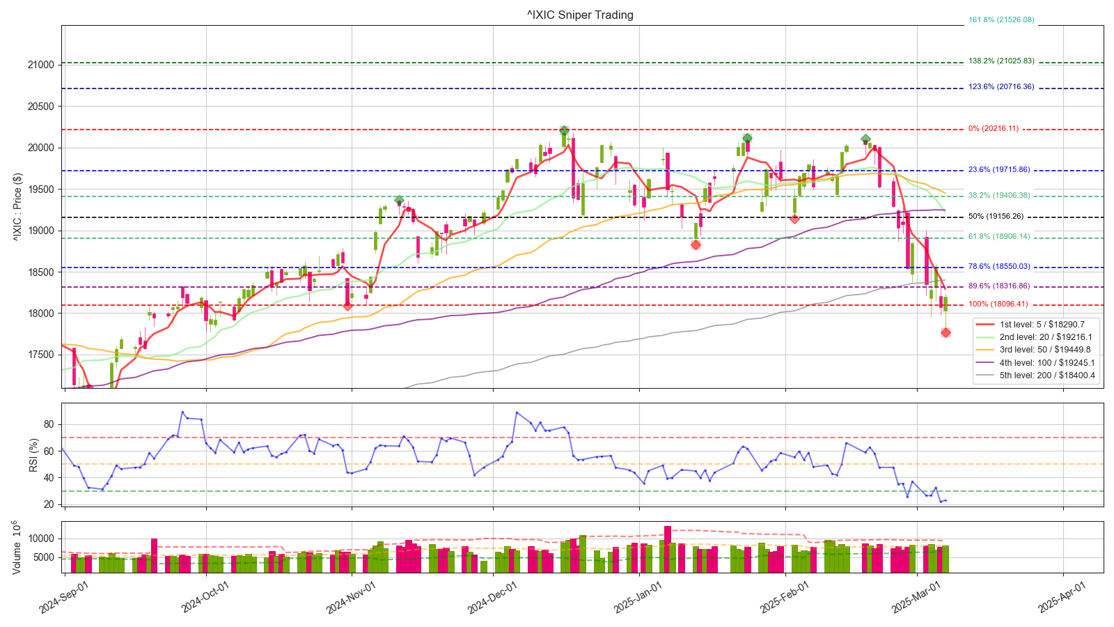 나스닥 원지수 18000 선을 굉장히 중요한 지지대로 보고 있었는데, 이미 돌파 당했습니다. 이제는 18000선과 200일선이 저항으로 작용할 소지가 높아졌는데, 빠르게 돌파해준다면 한번 더 희망회로를 돌려볼 수 있겠습니다.