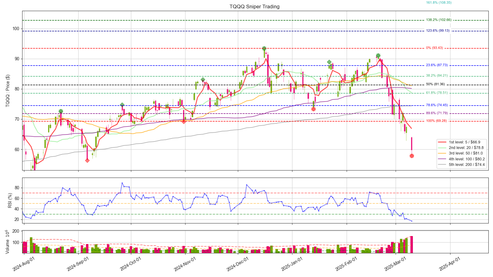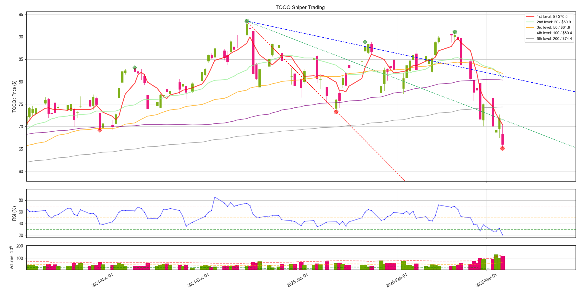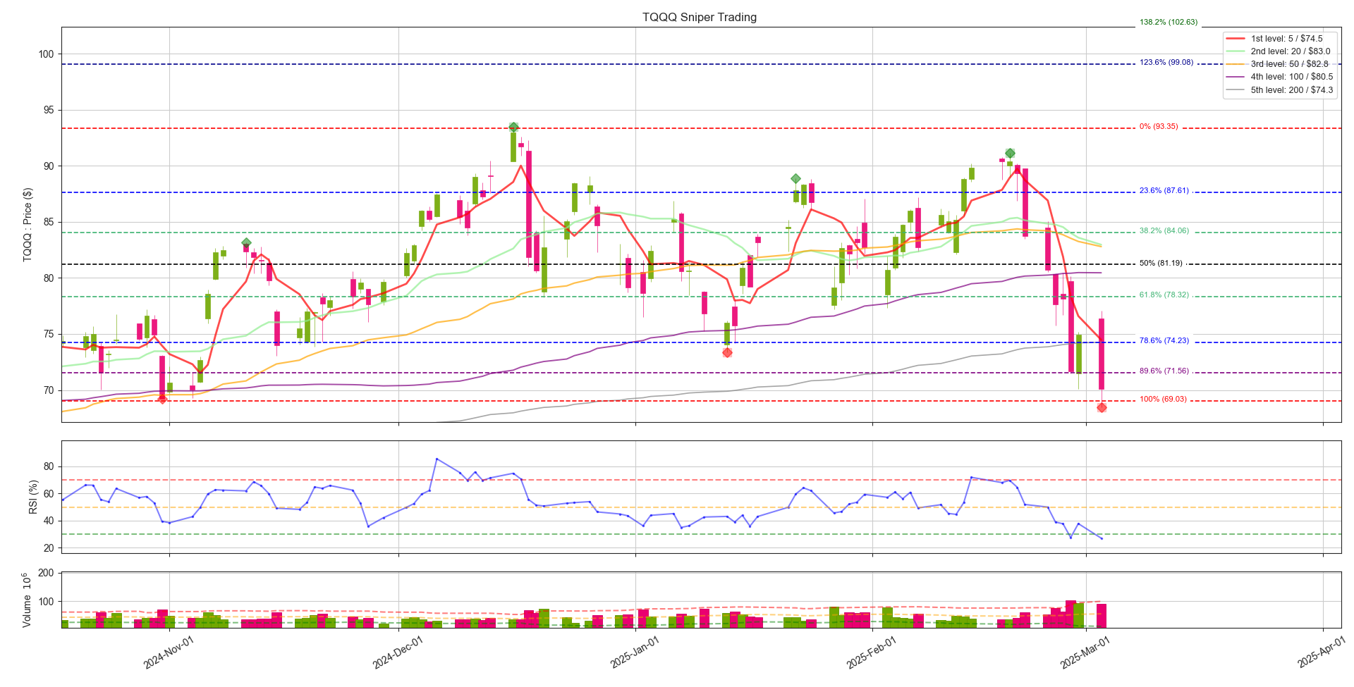 - 3배 레버리지 기준으로 손절가 이미 이탈했습니다. 본인의 원칙에 부합하지 않는다면, 손절도 고려하셔야 합니다. 저는 원지수까지 같이 보고 있고, 또한 거시경제 관점에서도 보고 있는데 이게 이렇게 빠지는게 사실 말이 안되서, 손실 감안하더라도 홀드 들어가려고 합니다. 단기적인 관점에서 빠르게 $70불 까지는 빠르게 회복을 해야 다음을 기약할 수 있습니다.